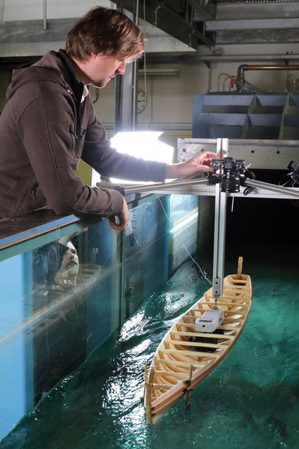 Das im Rahmen des 275-Jahr-Jubiläums der FAU durchgeführte Projekt zum originalgetreuen Nachbau eines römischen Patrouillenbootes steuert erfolgreich seinem Höhepunkt, der Jungfernfahrt am Main-Donaukanal am 12.5.2018 entgegen. Zuvor holten sich die Althistoriker noch Unterstützung vom Department CBI durch den Lehrstuhl für Strömungsmechanik. Am dort installierten Wasserkanal wurden unter reger Pressebeteiligung Messungen zur Bestimmung des Strömungswiderstands durchgeführt. Zwei Modelle mit unterschiedlichen Bug-Geometrien im Maßstab 1:10 mussten sich Geschwindigkeiten bis umgerechnet 10 Knoten stellen und bescheinigen dem antiken Design gute Fahrstabilität und Seetüchtigkeit.