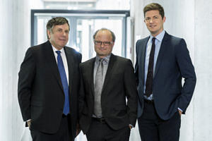 Prof. Peter Wasserscheid, Prof. Wolfgang Arlt und Dr.-Ing. Daniel Teichmann, CEO der FAU-Ausgründung Hydrogenious Technologies GmbH, sind für den Deutschen Zukunftspreis 2018 nominiert worden. Bereits die Nominierung würdigt die bahnbrechenden Forschungs- und Entwicklungsleistungen der Wissenschaftler der FAU im Bereich der gefahrlosen Wasserstoffspeicherung sowie deren erfolgreiche kommerzielle Umsetzung als Beitrag zu einem nachhaltigen Energiesystem. Die Jury trifft ihre Entscheidung am 28. November, Bundespräsident Frank-Walter Steinmeier verleiht den Deutschen Zukunftspreis 2018 am Abend in Berlin.
