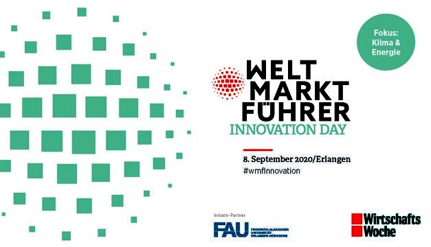 Die FAU ist Initiativ-Partner des „Weltmarktführer Innovation Day“ der WirtschaftsWoche, der am 8. September 2020 in Erlangen stattfindet. Renommierte Wissenschaftlerinnen und Wissenschaftler sowie Young Talents der FAU stellen ihre Forschungsergebnisse und Ideen zum Schwerpunktthema „Energie und Klima“ vor.