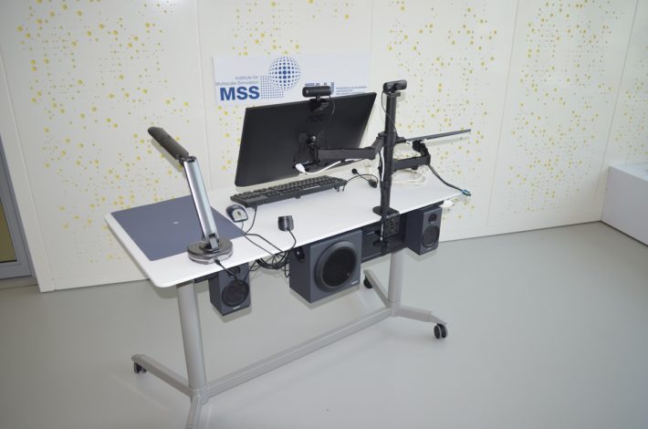 Der an der FAU entworfene Lehromat könnte hier Erleichterung verschaffen. Er erlaubt, dass mittels geschickt ausgerichteter Kamera zu Hause an den Rechnern das gleiche sehen ist, wie in den Klassenzimmern. Zudem können Schülerinnen und Schüler von der Lehrkraft für Wortmeldungen freigeschaltet werden. „Durch Videoprojektion und Tontechnik werden sie präsenter im Klassenraum, ganz so als ob sie vor Ort wären“, erklärt Prof. Pöschel.