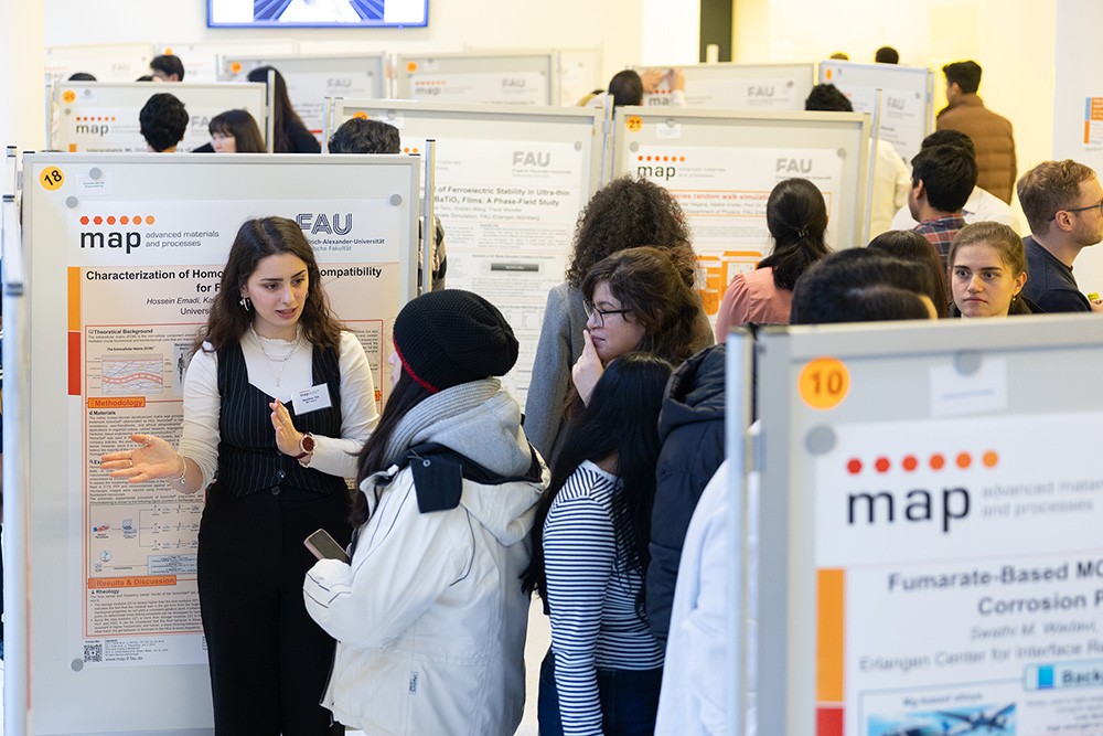 Am 4. Februar 2026 feierte der Studiengang sein 20-jähriges Jubiläum. Das Programm umfasste ein Symposium mit Vorträgen verschiedener in den MAP-Studiengang eingebundener Professoren, die die historische Gründung und erste Schritte des Programms (Prof. Müller, Initiator des MAP-Programms), die aktuelle Entwicklung (Profs. Felfer und Vogel, MAP-Chairs), die Bedeutung des Studiengangs für die Entwicklung der FAU (Prof. Peukert, langjähriger Dozent in MAP), sowie die generelle Bedeutung von internationaler Forschung und Austausch wissenschaftlicher Ideen für die Gesellschaften von Host- und Gastländern (Prof. Boccaccini), darstellten. Die jährliche Poster Session mit Beiträgen der MAP-Studierenden des dritten Semesters, die ihre Miniprojekte im Rahmen des Festakts präsentieren, rundeten die Veranstaltung ab.